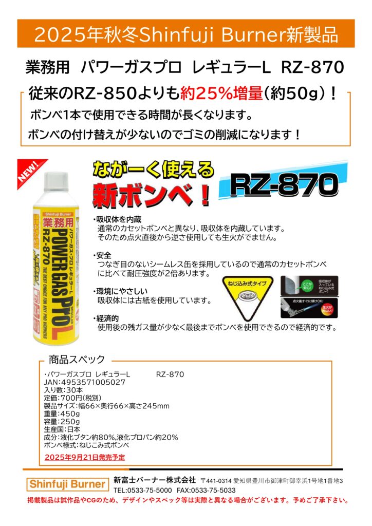 新富士 パワーガスプロ レギュラーL by ohtake · 2025年10月1日 RZ-870 PDF資料 2025年9月21日発売 この商品についてのお問合せ 氏名〈必須〉 電話番号〈必須〉 メールアドレス〈必須〉※メールアドレスが正しくない場合は返信できません お問い合わせ内容