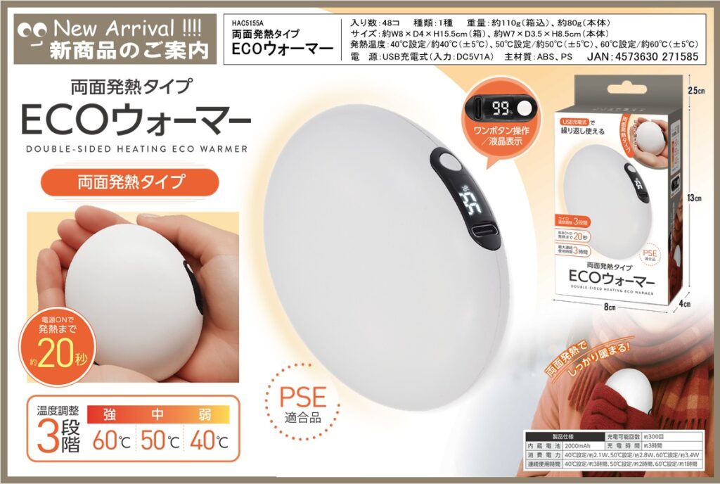 ハック 両面発熱タイプECOウォーター HAC5155 by onozuka · 2025年10月28日 HAC5155 両面発熱タイプECOウォーマー この商品についての問い合わせ 氏名〈必須〉 電話番号〈必須〉 メールアドレス〈必須〉※メールアドレスが正しくない場合は返信できません お問い合わせ内容