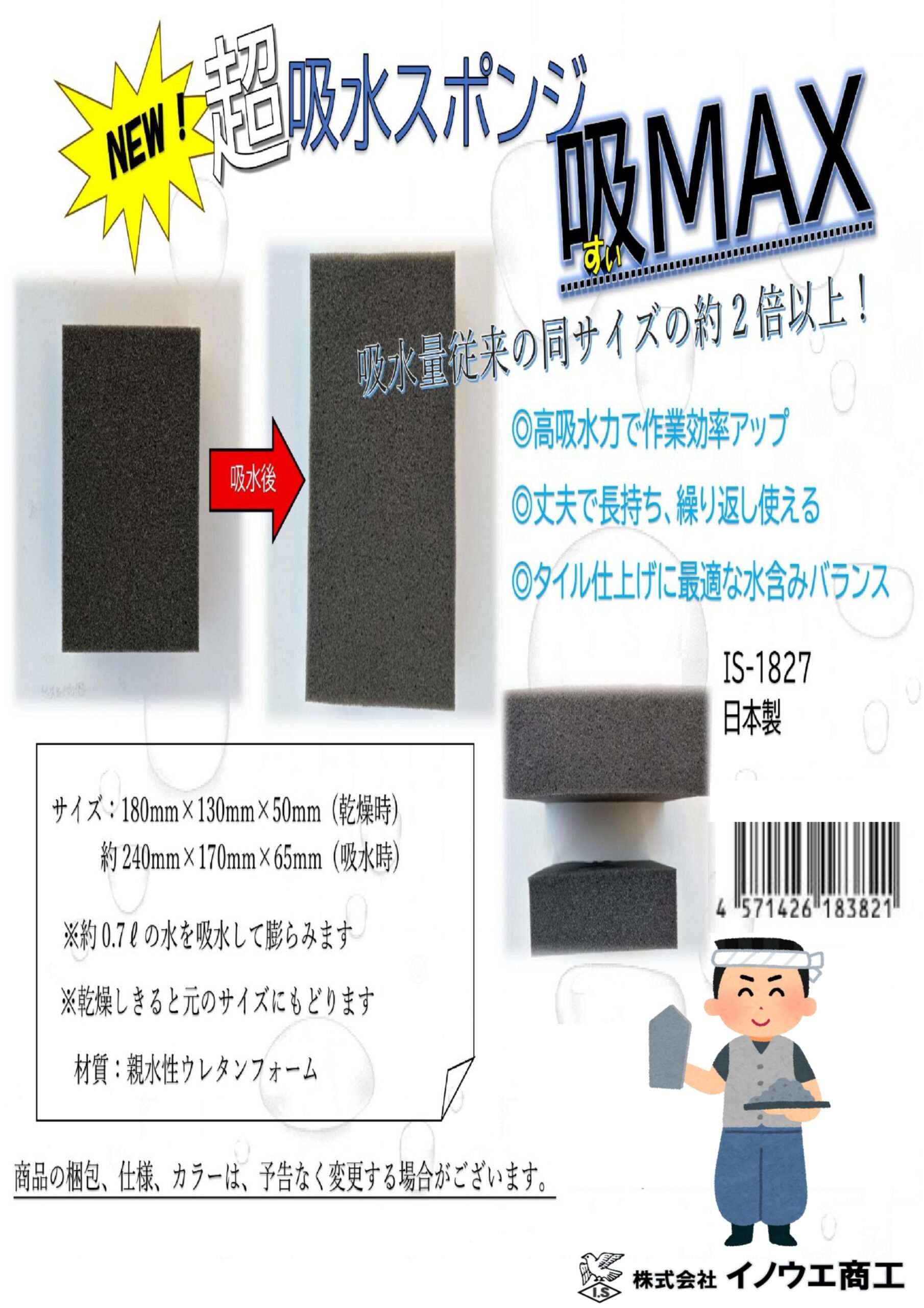 イノウエ商工 超吸水スポンジ 吸MAX by ohtake · 2025年11月8日 IS-1827 PDF資料 この商品についてのお問合せ 氏名〈必須〉 電話番号〈必須〉 メールアドレス〈必須〉※メールアドレスが正しくない場合は返信できません お問い合わせ内容