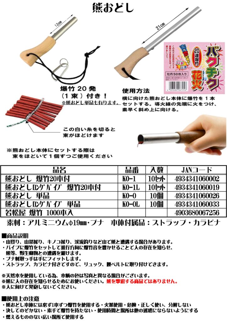 熊おどし by ohtake · 2025年11月24日 KO 爆竹使用 PDF資料 この商品についてのお問合せ 氏名〈必須〉 電話番号〈必須〉 メールアドレス〈必須〉※メールアドレスが正しくない場合は返信できません お問い合わせ内容