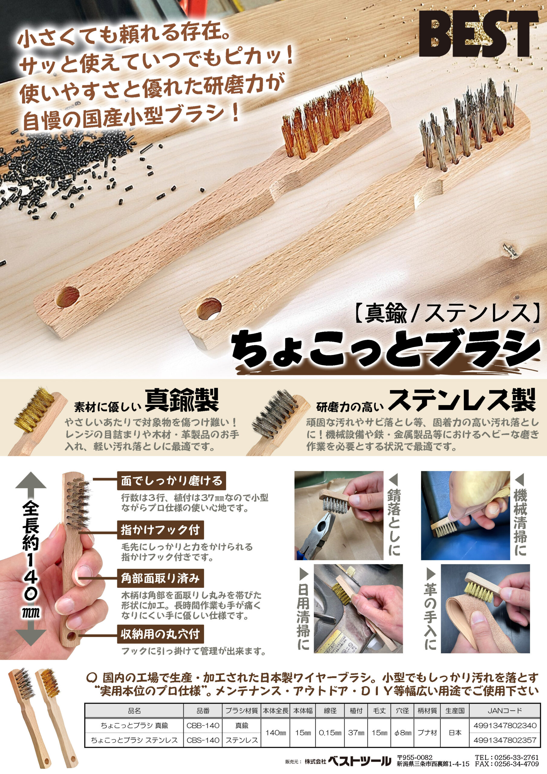ベストツール ちょこっとブラシ by ohtake · 2026年1月16日 真鍮製・CBB-140 ステンレス製・CBS-140 PDF資料 この商品についてのお問合せ 氏名〈必須〉 電話番号〈必須〉 メールアドレス〈必須〉※メールアドレスが正しくない場合は返信できません お問い合わせ内容