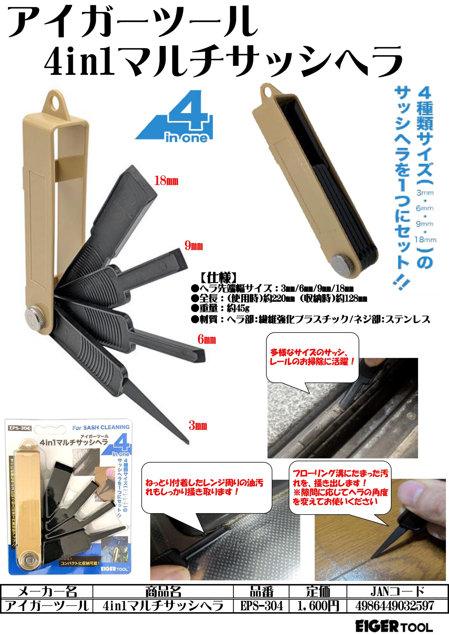 アイガーツール 4in1マルチサッシヘラ by ohtake · 2026年1月23日 EPS-304 PDF資料 この商品についてのお問合せ 氏名〈必須〉 電話番号〈必須〉 メールアドレス〈必須〉※メールアドレスが正しくない場合は返信できません お問い合わせ内容