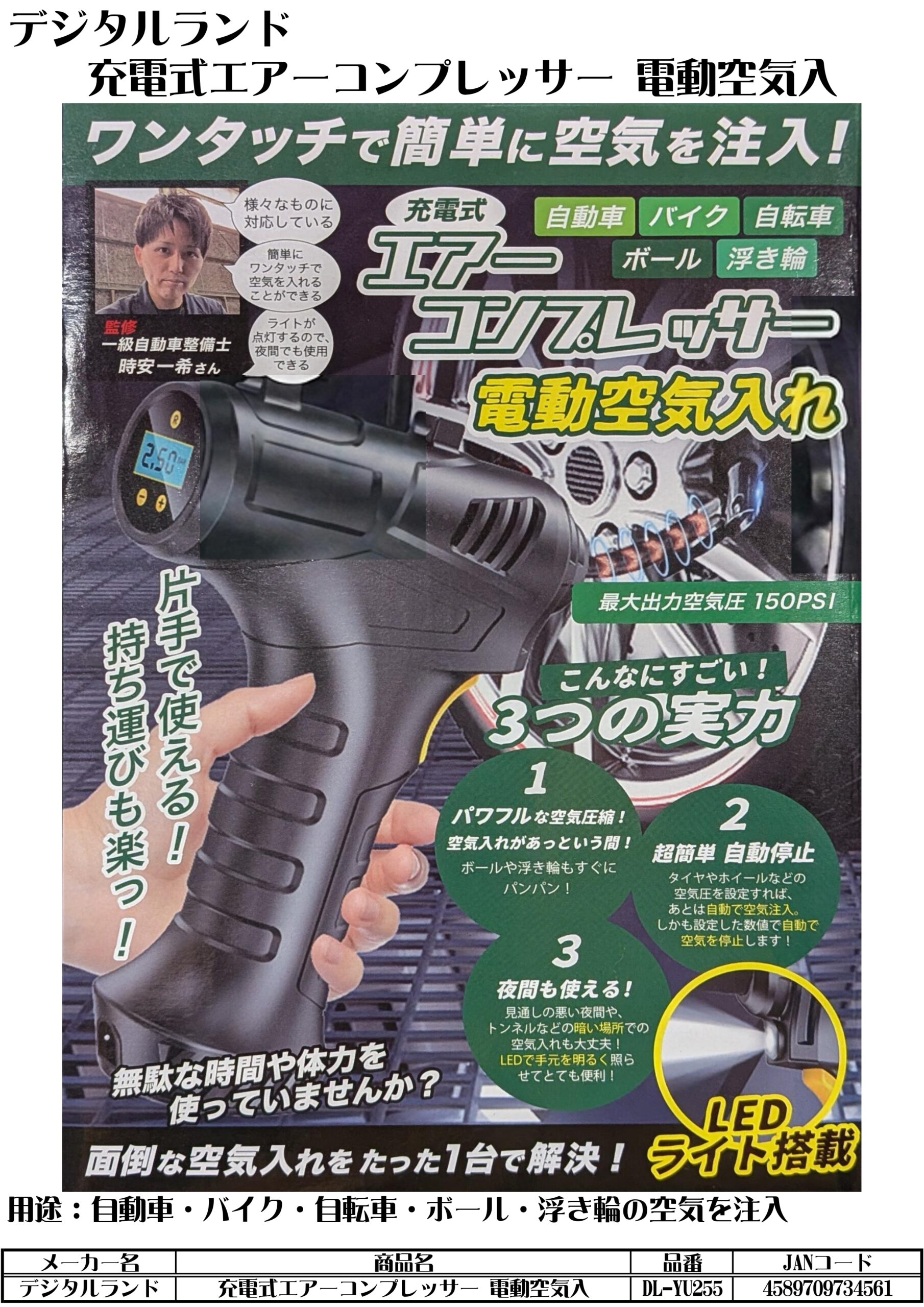デジタルランド 充電式エアーコンプレッサー 電動空気入 by ohtake · 2026年3月8日 DL-YU255 PDF資料 取扱説明書 この商品についてのお問合せ 氏名〈必須〉 電話番号〈必須〉 メールアドレス〈必須〉※メールアドレスが正しくない場合は返信できません お問い合わせ内容