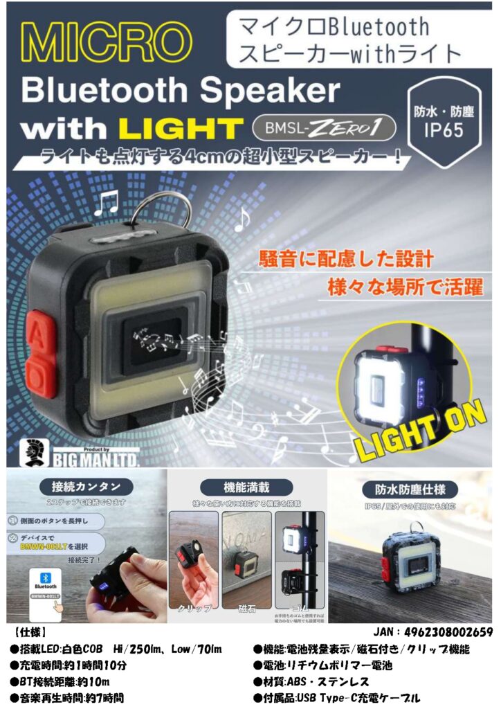 BIGMAN マイクロBluetoothスピーカーWithライト BMSL-ZERO1 by yagi · 2026年3月24日 BIGMAN BMSL-ZERO1-PDF資料 この商品についてのお問い合わせ 氏名〈必須〉 電話番号〈必須〉 メールアドレス〈必須〉※メールアドレスが正しくない場合は返信できません お問い合わせ内容