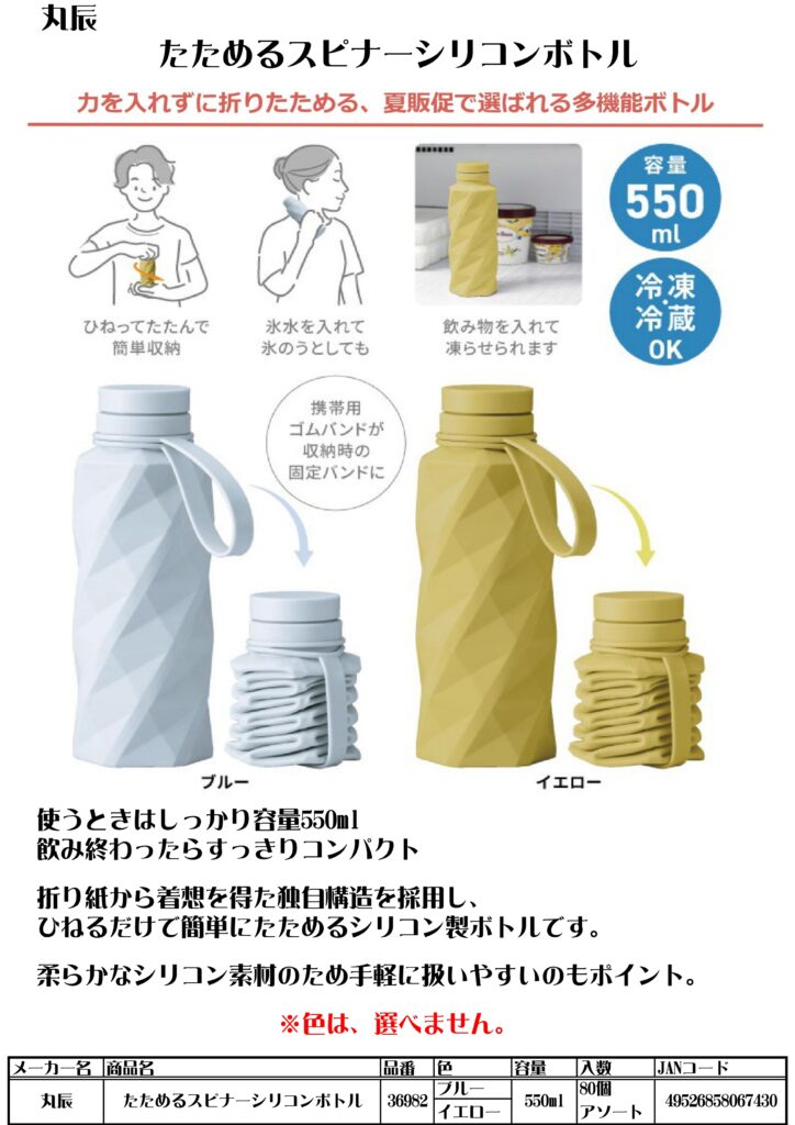 丸辰 たためるスピナーシリコンボトル by ohtake · 2026年3月24日 550ml №36982 色:ブルー・イエロー 色指定不可です。PDF資料 この商品についてのお問合せ 氏名〈必須〉 電話番号〈必須〉 メールアドレス〈必須〉※メールアドレスが正しくない場合は返信できません お問い合わせ内容