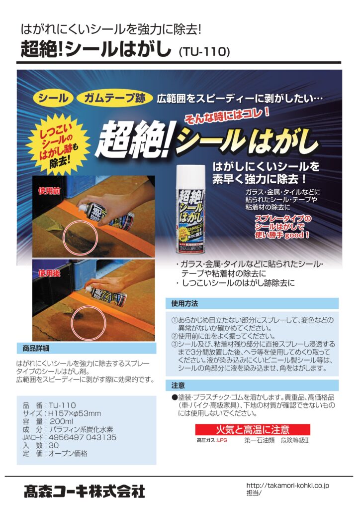高森コーキ 超絶!シールはがし by ohtake · 2026年4月3日 TU-110 PDF資料 ご使用方法動画 この商品についてのお問合せ 氏名〈必須〉 電話番号〈必須〉 メールアドレス〈必須〉※メールアドレスが正しくない場合は返信できません お問い合わせ内容