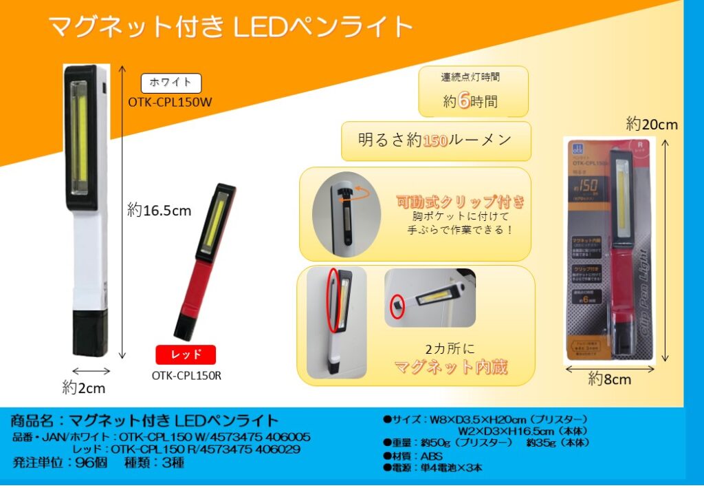 インターベース マグネット付きLEDペンライト by onozuka · 2026年4月10日 マグネット付きLEDペンライト この商品についての問い合わせ 氏名〈必須〉 電話番号〈必須〉 メールアドレス〈必須〉※メールアドレスが正しくない場合は返信できません お問い合わせ内容